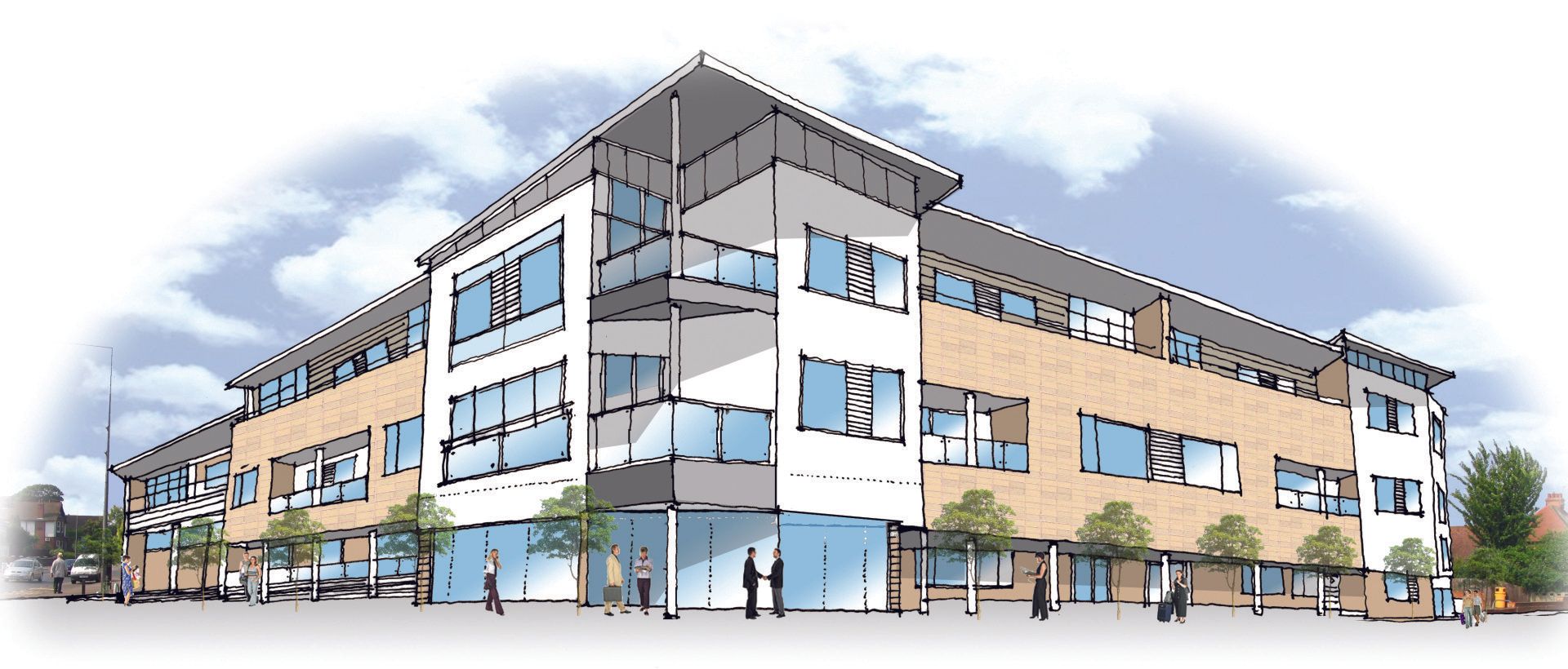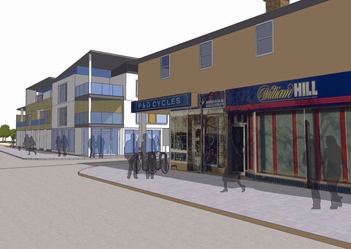 The redevelopment of a former car sales showroom into residential and multi-use occupation with a high street frontage.