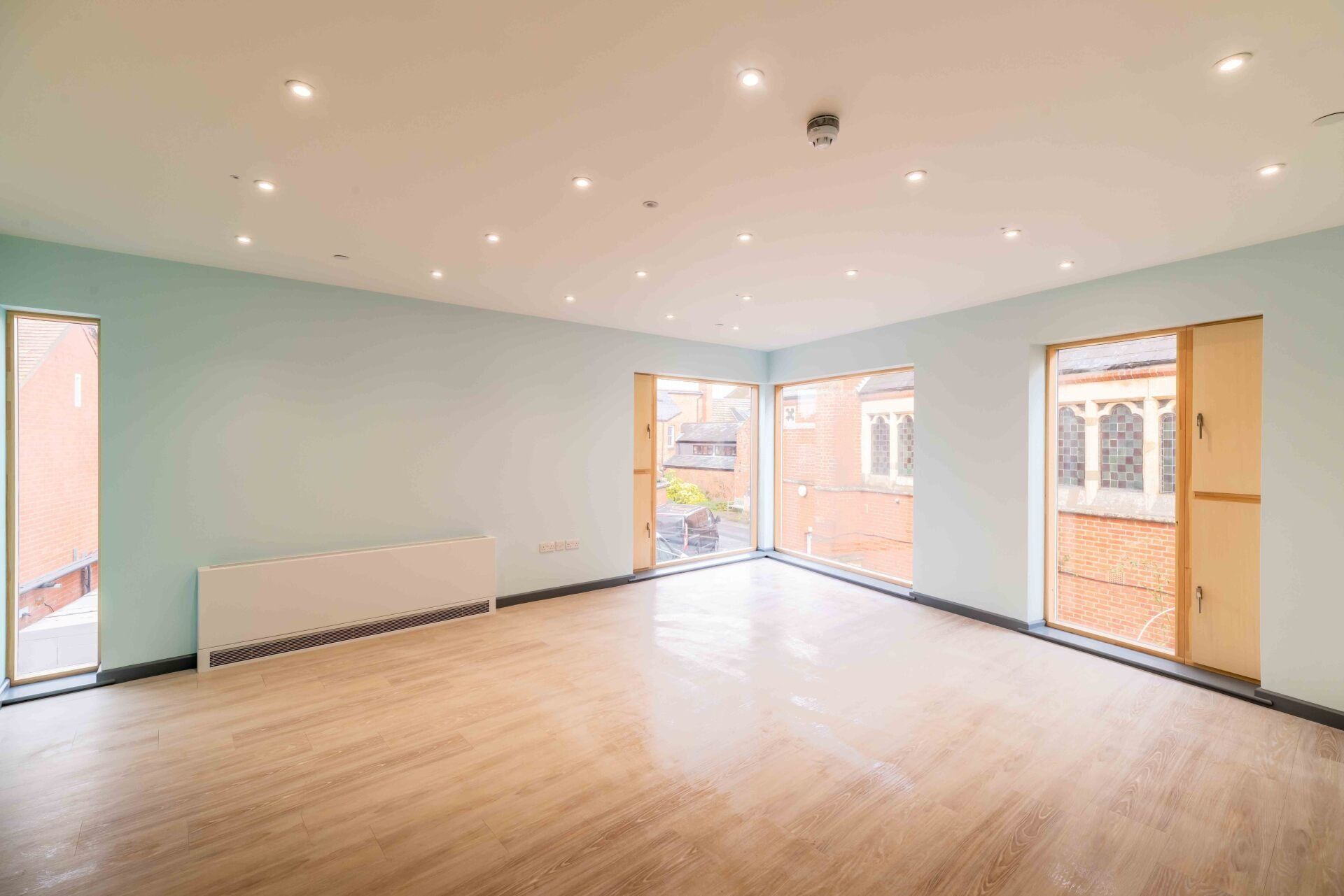 The demolition and replacement of the church hall to include a large, multi-use hall, meeting rooms, sensory room and amenities on a tightly constrained site. Designed with simple materials and elegant details to avoid competing with the adjacent church.